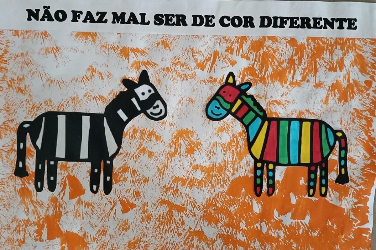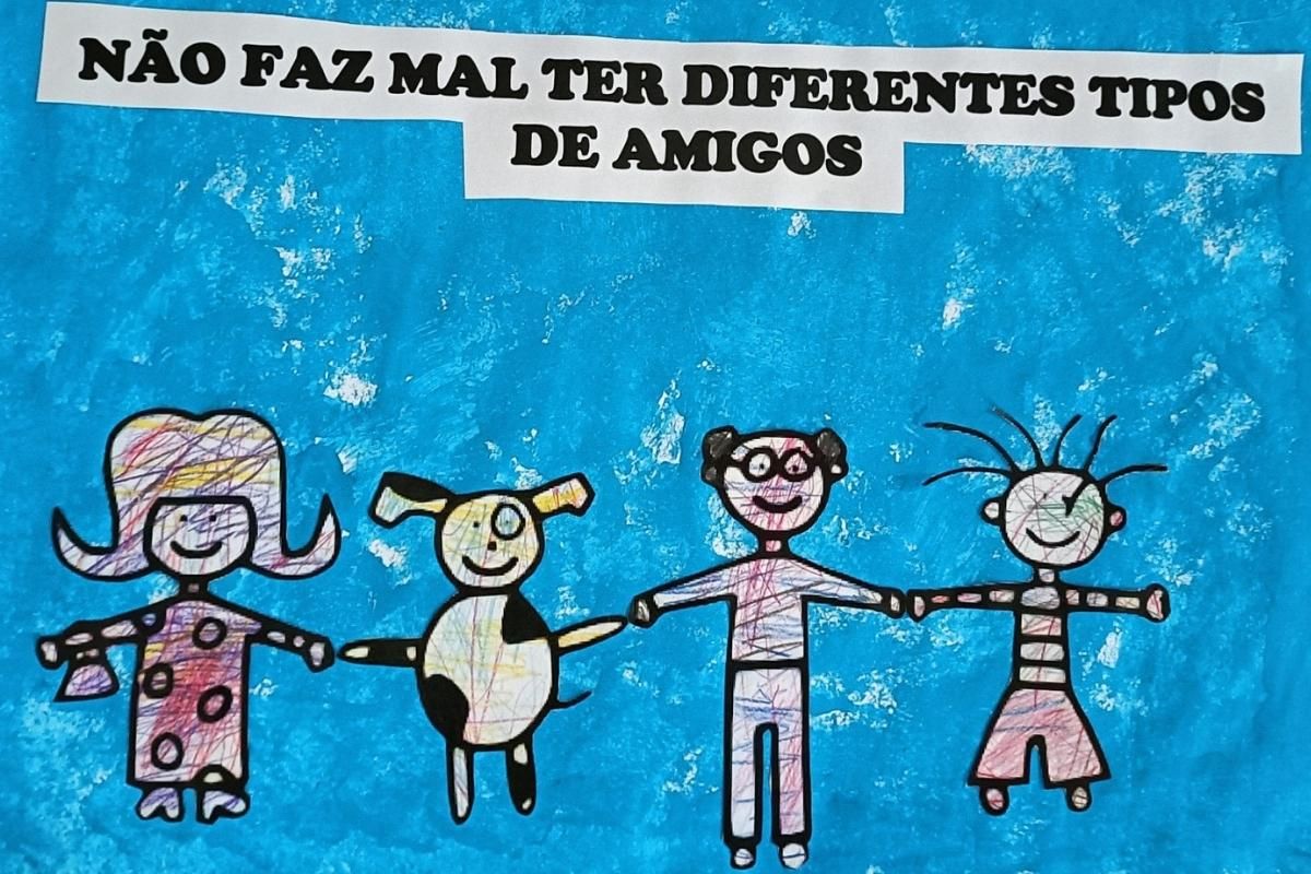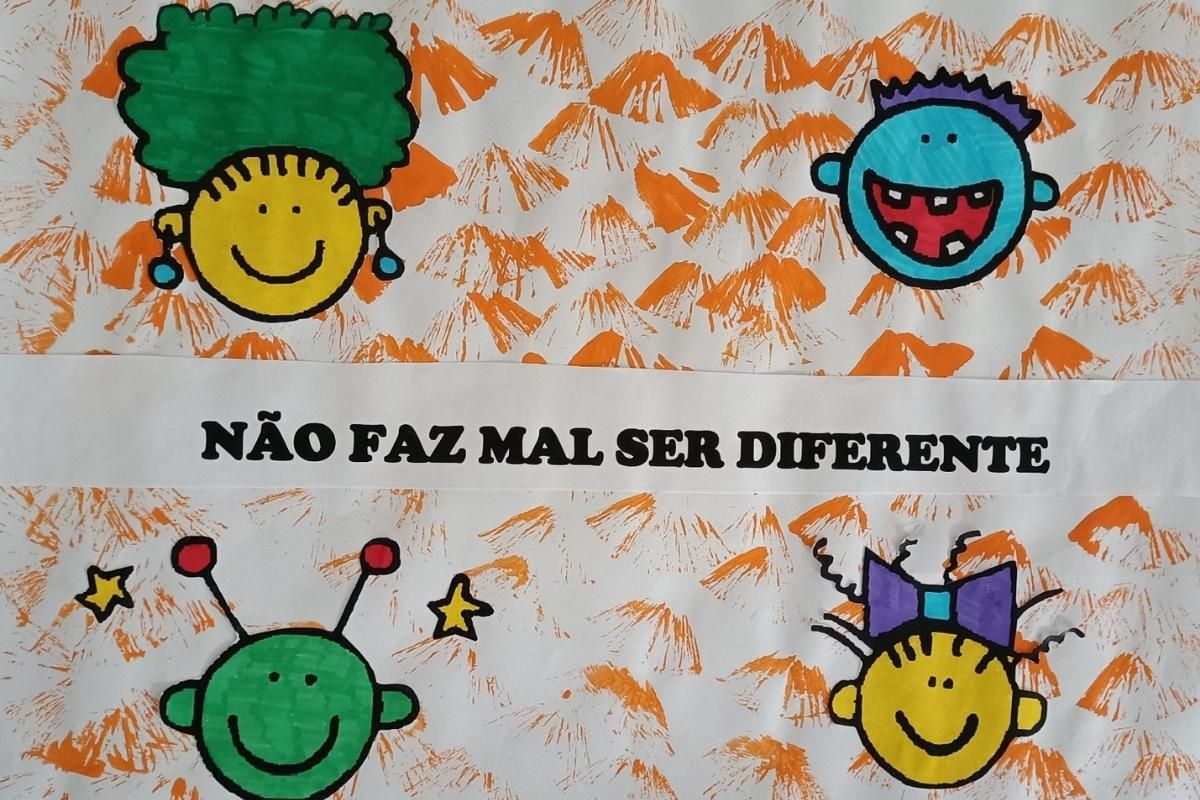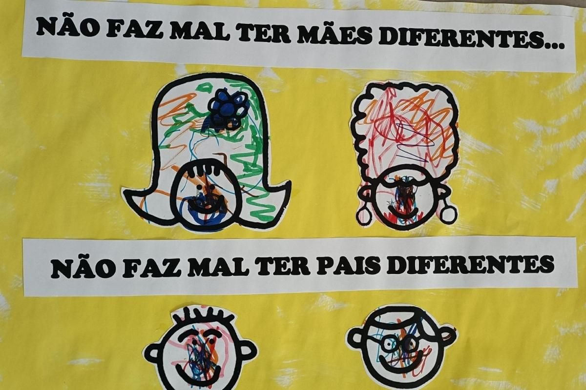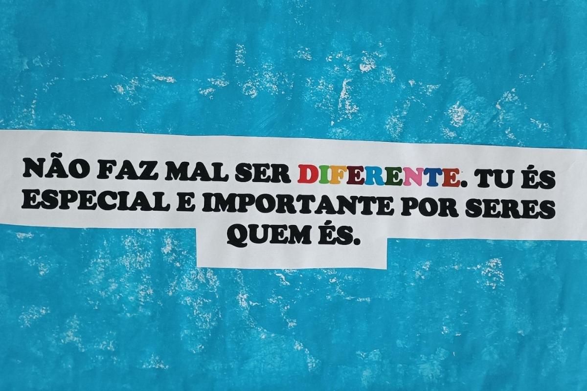 Entre as mensagens representadas podemos encontrar: “Não faz mal ter mães diferentes”, “Não faz mal ter pais diferentes”, “Não faz mal falar de sentimentos”, ou ainda, “Não faz mal ser de cor diferente”.